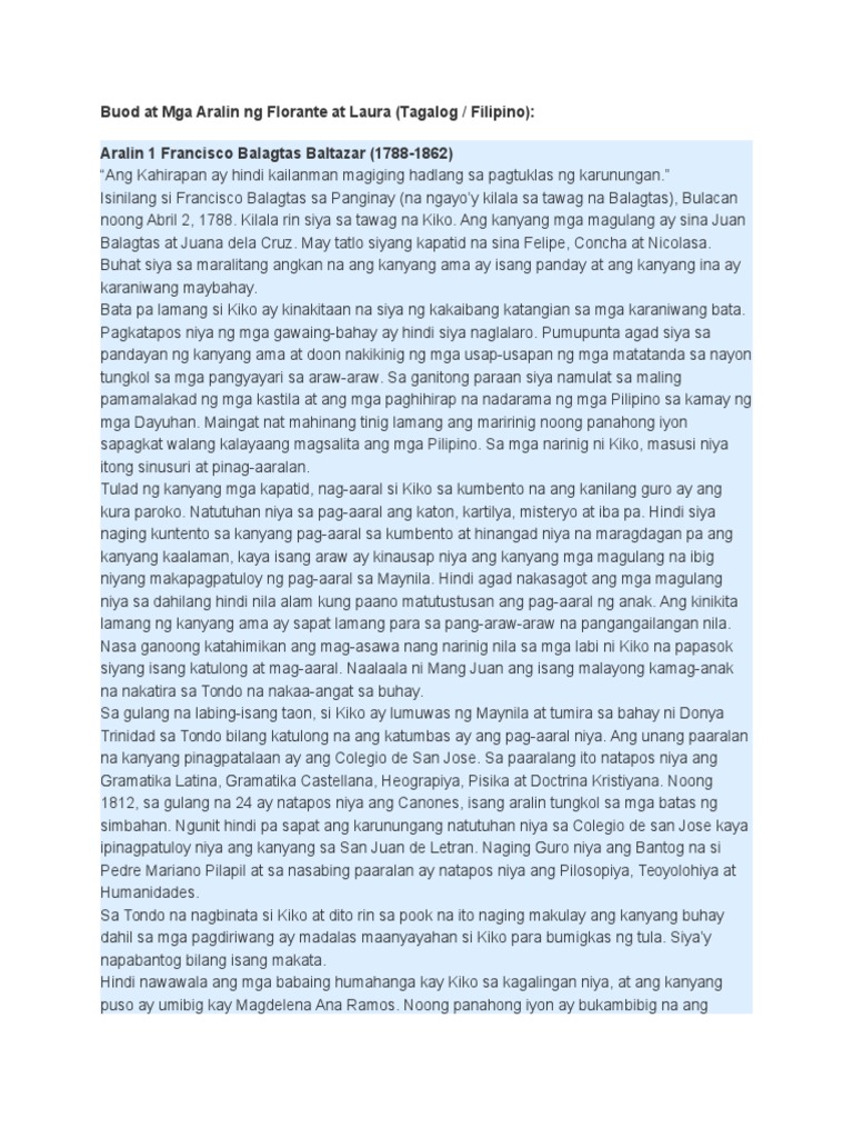 Ang Pagsaklolo 126 Sa tinaghuy-taghoy na kasindak-sindak 131 Naakay ng gutom at gawing manila gereroy hindi na napigil ang habag. Florante At Laura Buod - 16 images - florante at laura powerpoint buod ng bawat kabanata ng florante at laura pdf florante at laura aralin 17 21 florante at laura. Kayat bawal siyang mabigla o magulat.